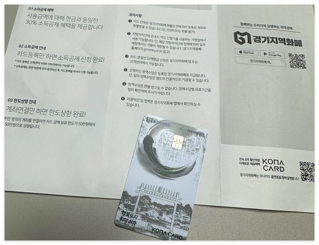 얼마 전에, 경기지역화폐 앱을 다운로드하고, 카드를 신청했습니다.