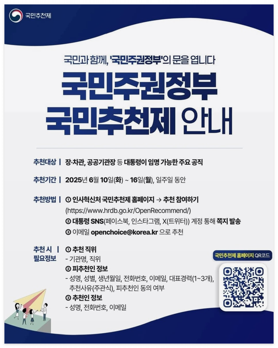 2025년 6월, 이재명 정부가 ‘국민참여 인사 혁신’의 일환으로 국민추천제를 전격 시행했습니다.