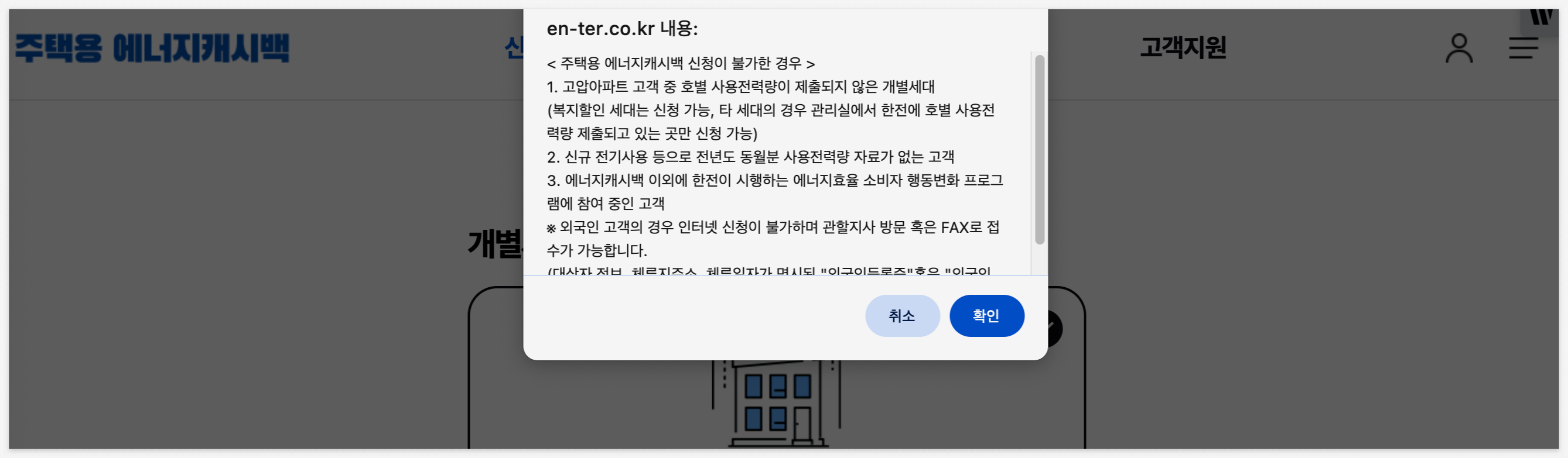 → 네. 단, 개별 전기계약이 되어 있고 사용량 정보 제출이 된 경우에만 가능해요.