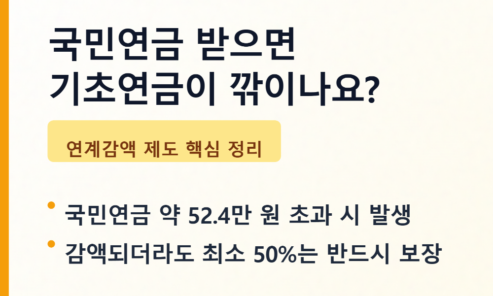 A: 국민연금 수령액이 일정 금액(약 51만 원)을 초과하면 기초연금이 최대 50%까지 감액될 수 있습니다. 이를 '연계 감액'이라고 합니다.