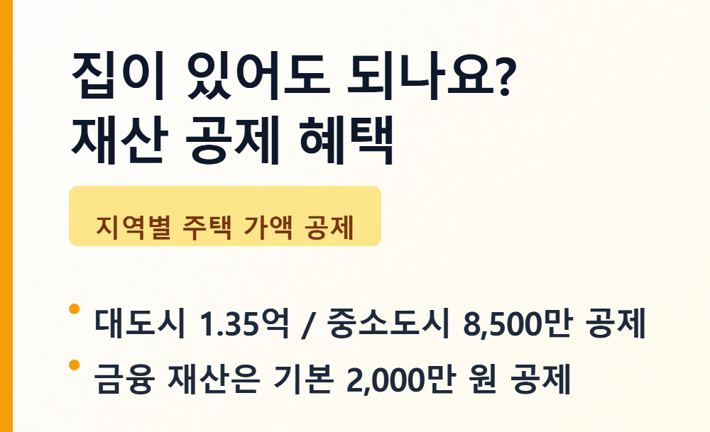 - 재산: 대도시 집값 1.35억, 예금 2,000만 원 공제 덕분에 커트라인이 생각보다 낮음.