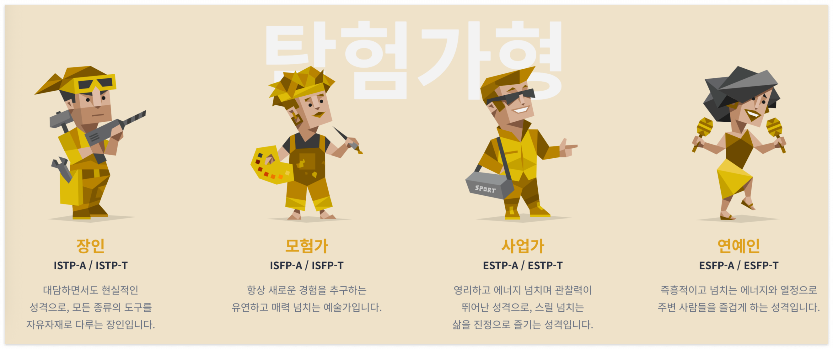 - ISTP – 장인형: 현실적이며 문제 해결 능력 뛰어남